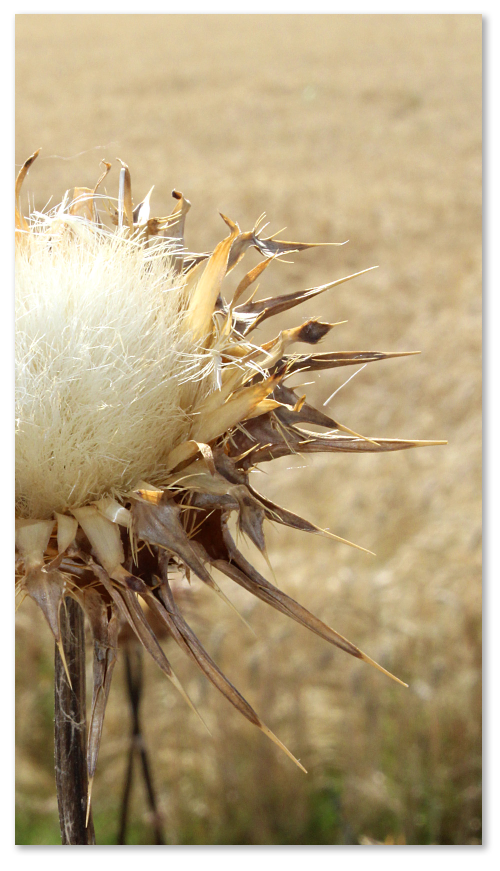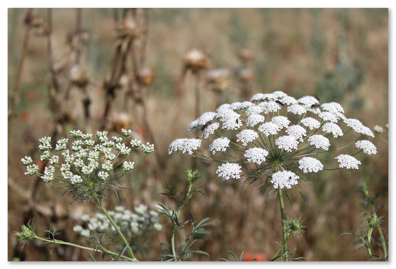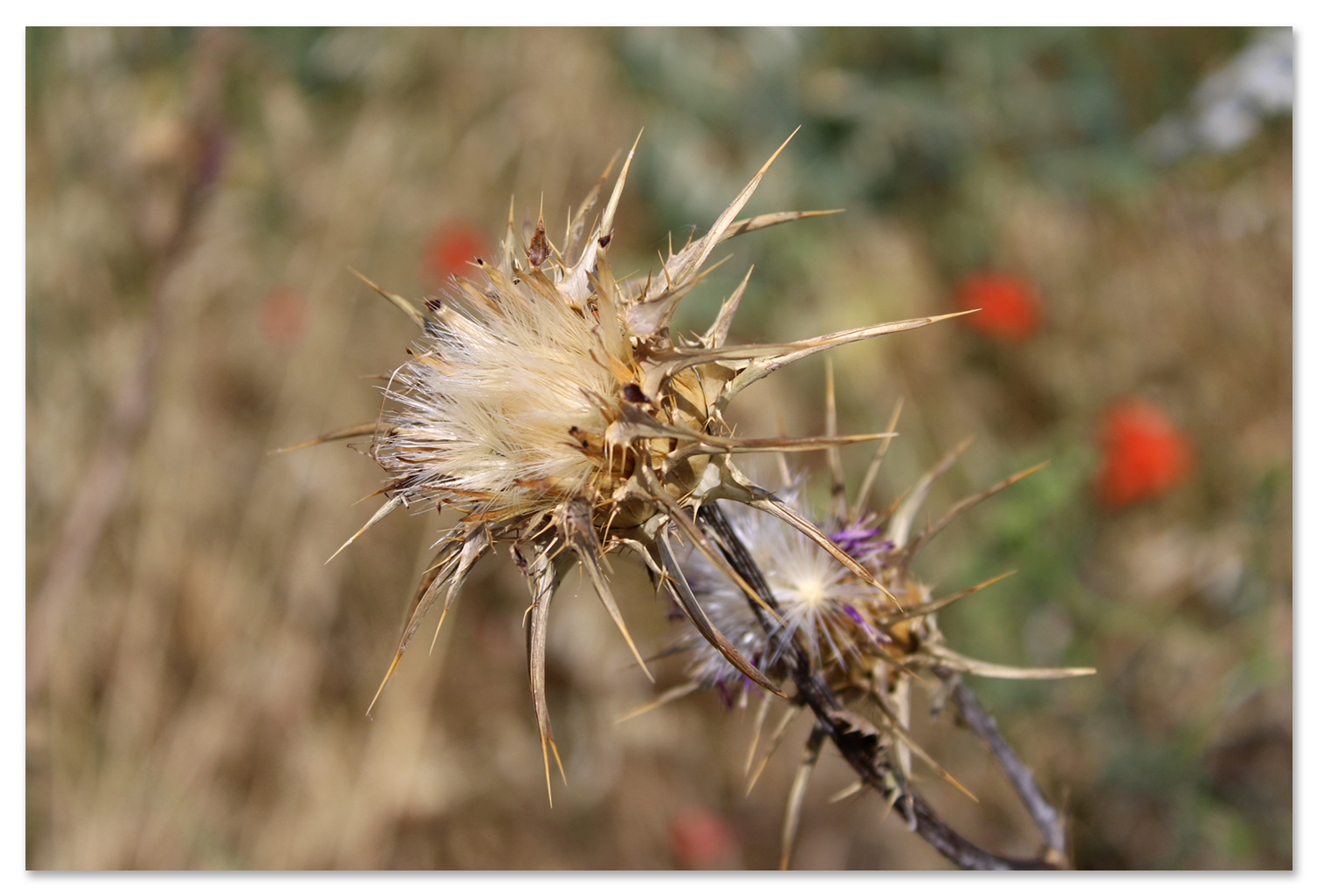 Esta vez el recorrido lo marca la lente de mi cámara que se vuelve caprichosa con los macros. Empiezo a bajar el ritmo de mi paso por un camino de tierra flanqueado por campos sembrados de trigo y decorados en sus veras por todo tipo de plantas silvestres y empiezo a fotografiar lo que la lente ve y solo puedo intuir.